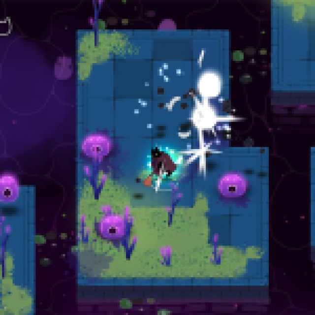 Combat in Crypt Custodian is endlessly entertaining. Despite a wooden broom being Pluto’s sole weapon of choice, a plethora of Upgrades and Special Attacks can be discovered to augment the way you approach enemies, making each battle a fast-paced flurry of sweeps, jumps, and dashes. Gauntlets of enemies are often found scattered around each zone, giving you a chance to test your skills wave after wave, but the combat truly shines in Crypt Custodian’s exhilarating boss battles, some of which nearly turn the game into chaotic pits of bullet-hell mayhem.