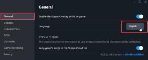 - In the General tab, select the desired language from the drop-down
