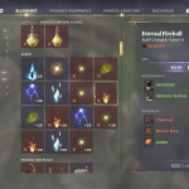 For spells, you are mostly looking at the Fireball II and Eternal Fireball. Eternal Fireball is an infinite Fireball spell, which needs 50 Amber. Since it is an Eternal or infinite spell, you want to prioritize this over the other Fireball spell because it takes 5 Amber to make each Fireball II spell, which is, sadly, temporary.