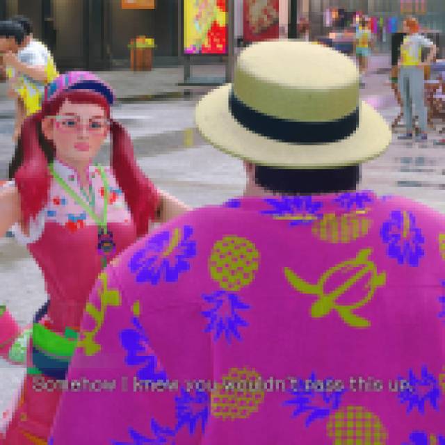 Your next stop is to return to Beat Square. Find the food vendor indicated by a quest marker, and he’ll alert you to a stray dog nearby. Give the stray dog a Flight Ticket to make him happy. The dog will leave… to Pao Pao Cafe 6. It turns out this is Blue Mary’s dog. Return to Pao Pao Cafe 6 and talk to Blue Mary. She thanks you for leading her dog back and, as a reward, gives you the NEO-GEO game The Knights of Fantasia, which will raise Terry’s Bond Level by 40 when you gift it to him. (Blue Mary will also teach your character her classic move, Vertical Arrow.)
