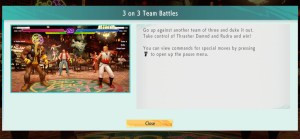 Once you defeat all three opponents, you are taken to Pao Pao Cafe 6, and it is added to your list of accessible areas. There, you need to win a 3v3, King of Fighters-style bout against Andres (a reference to Andy), Marilyn (a reference to Blue Mary), and George Azuma (a reference to Joe, which will be important later). You’ll control Thrasher Damnd, Rudra, and your personal fighter. All other characters will be Level 45, while your fighter will be your normal level, so you may have an easy time if you’ve been clearing all the missions in regular World Tour Mode. After you win this 3v3 battle, Terry will accept you as his student, and you can start working on unlocking his Outfit 2.