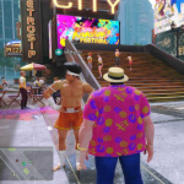 Select Knock Out Festival and go to Metro City. This version only includes Beat Square. Talk with Alice, who gives you a Knock Out Festival hat. Wear the hat and defeat the three other people wearing the same hat, indicated on the map with quest markers. The characters are all references to Fatal Fury characters, like Duck Queen (referencing Duck King) and Mr. Maximum (referencing Michael Max). Terry will interrupt one of your fights with a cutscene, after which you need to fight any remaining opponents.