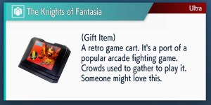 The Knights of Fantasia is Terry’s favorite item, raising his Bond Level by a whopping 40. You’ll need to complete two quests to earn this item. To start, go back to Beat Square and speak to Joe Higashi (he’ll have a quest marker displayed on the map). After talking to him, he’ll direct you to speak to Blue Mary nearby. Blue Mary wants you to buy a Standard T-Shirt from the clothing store right beside her, since she’s embarrassed that Joe never wears a shirt.