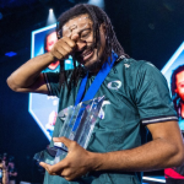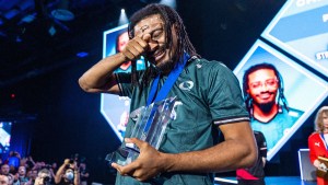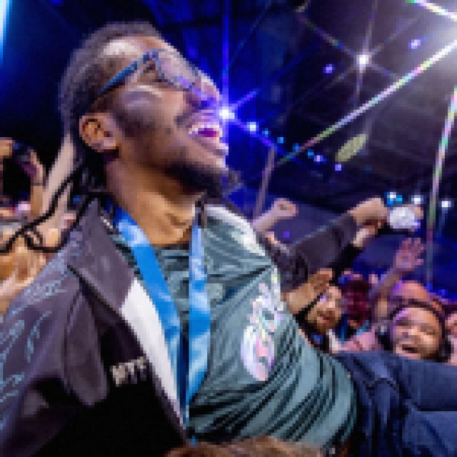 Nitro, representing team FlyQuest, was knocked into the Losers Finals of the Guilty Gear STRIVE top 6 players – but that didn’t deter him. Climbing his way back into the Grand Finals, Nitro forced a reset against Japanese player Tatuma. The entire arena was on the edge of their seats as it came down to the final match of game 5, when Nitro’s Jack-O backed Tatuma’s Sol Badguy into the wall, caught him mid-air, and delivered the final combo to seal the victory.